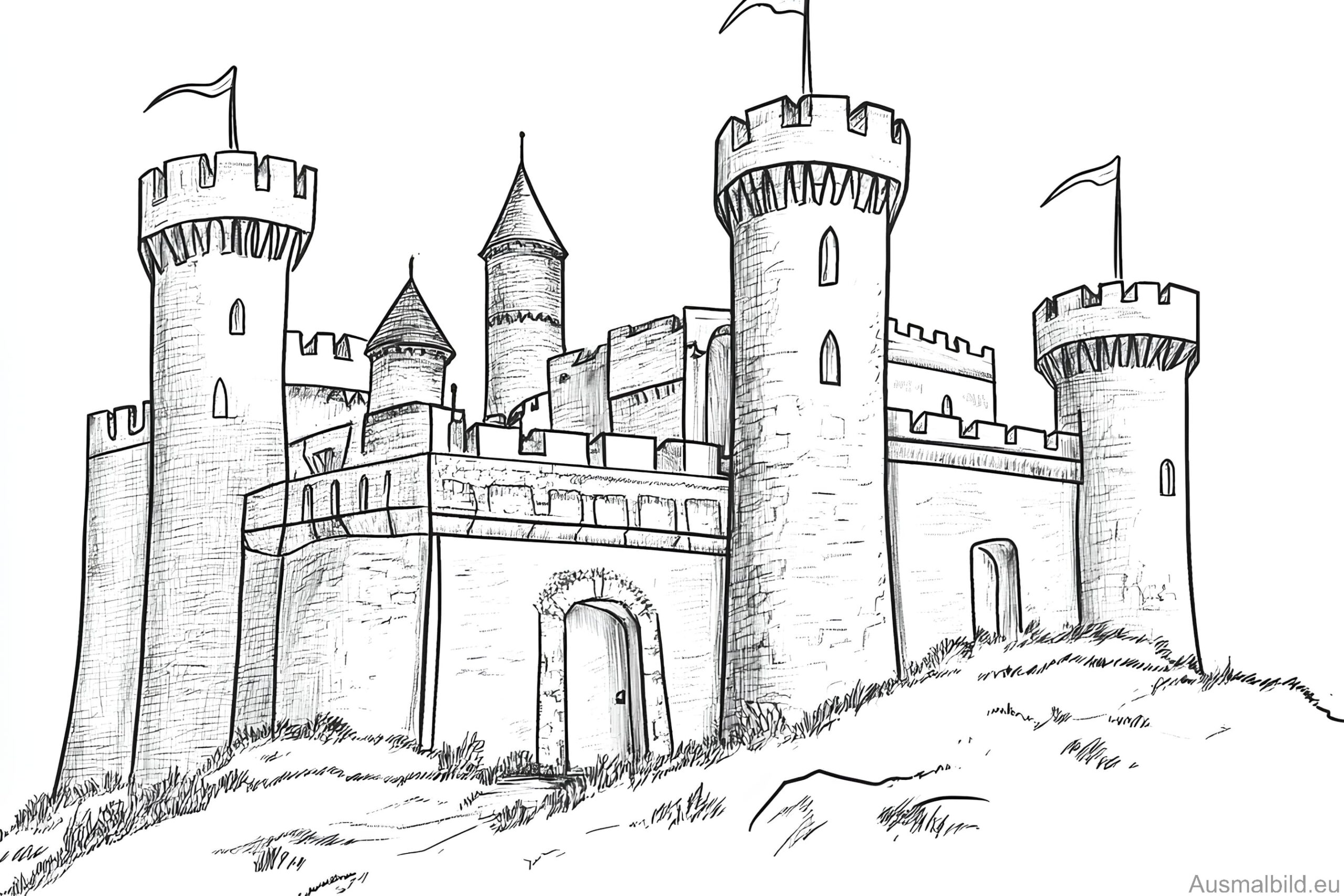 Mittelalterlichen Spaß mit unserem kostenlosen Ausmalbild einer alten Ritterburg, die eine beeindruckende Wehranlage mit majestätischen Türmen zeigt. Dieses liebevoll gestaltete Ausmalbild ist die perfekte Malvorlage für kreative Köpfe und junge Künstler, die gerne ihre Fantasie zum Leben erwecken wollen. Die detailreiche Darstellung der Burg lädt dazu ein, mit Farben zu experimentieren und die historische Atmosphäre einer vergangenen Zeit zu erleben. Egal ob du ein Fan von Rittergeschichten bist oder einfach nur gerne malst, unser Ausmalbild bietet dir die Möglichkeit, deiner Kreativität freien Lauf zu lassen. Lade dir die Malvorlage jetzt herunter und entdecke die Freude am Ausmalen. Die alte Ritterburg wartet darauf, von dir mit bunten Farben zum Strahlen gebracht zu werden. Lass dich inspirieren und mach dich bereit, ein kleines Kunstwerk zu schaffen, während du die verschiedenen Elemente der Burg erkundest und deine individuellen Ideen umsetzt. Es ist eine ideale Beschäftigung für einen entspannten Nachmittag oder eine kreative Herausforderung für die ganze Familie. Klicke einfach auf den button um das Ausmalbild herunterzuladen und dein Abenteuer mit der Ritterburg zu beginnen.