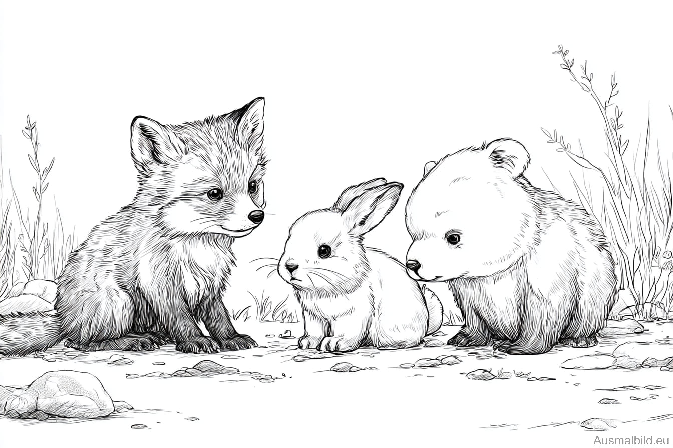 Viel Spaß mit unserem bezaubernden Ausmalbild, das eine fröhliche Szene von drei Babytieren im Wald zeigt, die voller Neugier und Lebensfreude miteinander spielen. Diese Malvorlage ist perfekt für die kleinen Künstler in deiner Familie und bietet endlose Möglichkeiten, die Kuscheltiere Hase, Fuchs und Bär mit deinen eigenen Farben zum Leben zu erwecken. Lade die kostenlose PDF-Datei herunter und nutze die Gelegenheit, die Kreativität deines Kindes zu fördern, während es sich mit unseren bezaubernden Tierfreunden beschäftigt und die Schönheit der Natur entdeckt. Egal, ob du es für einen ruhigen Nachmittag oder eine kreative Beschäftigung an einem regnerischen Tag verwendest, unser Ausmalbild bringt nicht nur Spaß, sondern auch wertvolle Zeit der Entspannung und Freude. Lass die Phantasie deines Kindes fliegen und mache den Wald zu einem bunten Spielplatz mit seinen liebsten Baby-Tieren. Klicke einfach auf den Button, um die Malvorlage herunterzuladen und bereite dich darauf vor, staunende Gesichter zu sehen, wenn die kleinen Künstler ihre Meisterwerke präsentieren.