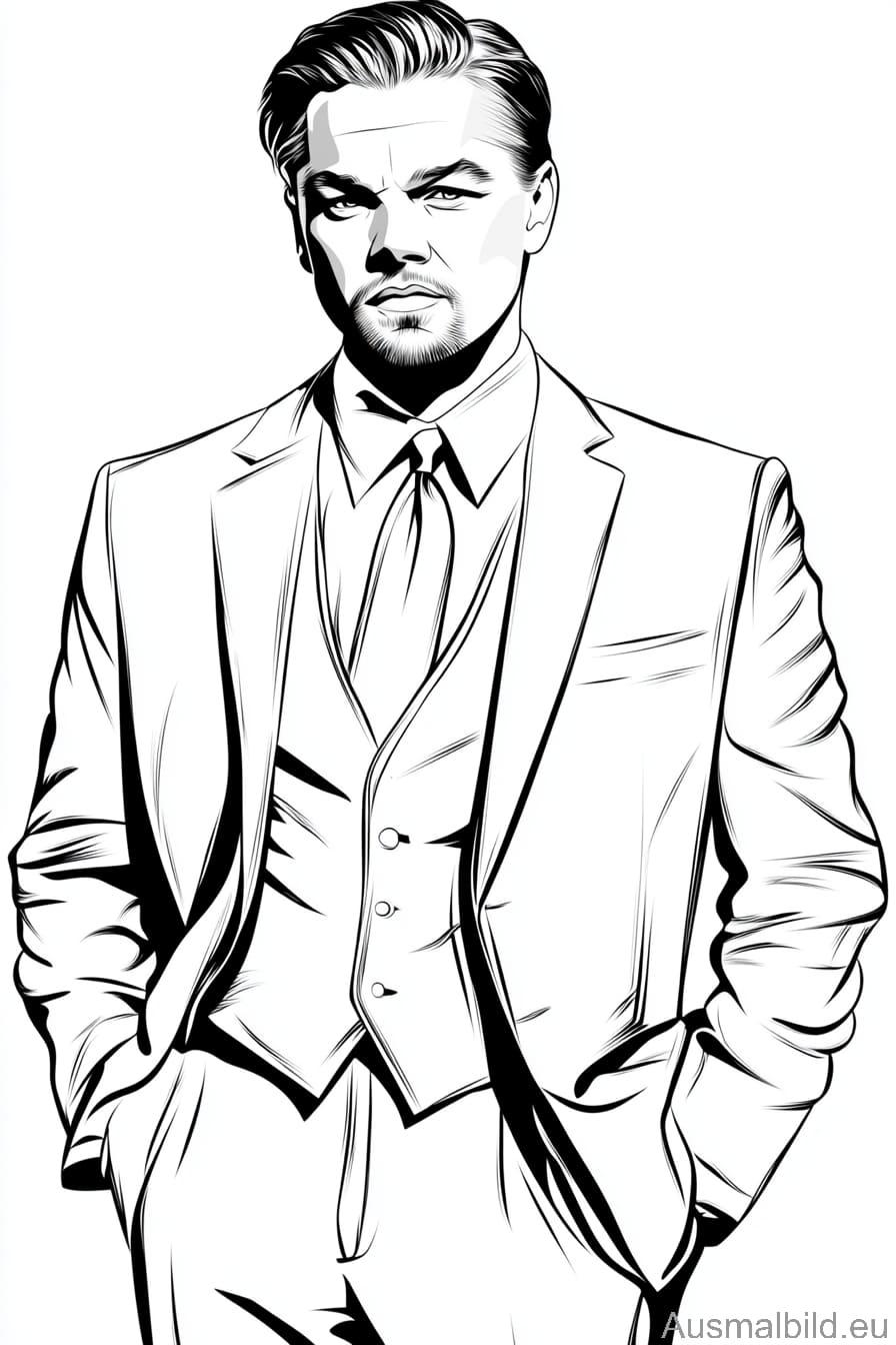 Have fun with our unique coloring picture of Leonardo DiCaprio, the Hollywood superstar and master of acting! Have you ever wondered what it would be like to stand in the spotlight at the Oscars while bringing the colors to life with your paintbrush? Well, now’s your chance! Not only is our coloring page free, but it also gives you the chance to unleash your creative streak and design Leo in all his glorious facets. Every stroke and every color you choose brings him a little closer to your personal masterpiece. It’s almost as if you’re the director and the colors play the leading role! Simply download the coloring page, print it out and let your imagination run wild. So, what are you waiting for? Click on the button and send Leo on a colorful journey that can’t be found in Hollywood or any other movie! Get ready, because coloring has never been so exciting!