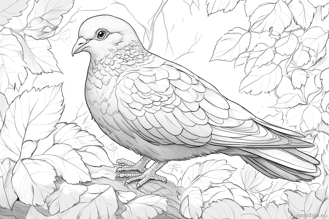 Here you can see our beautiful coloring picture of a pigeon sitting peacefully in the forest. This coloring page, which you can download and print for free, invites you to get creative and add your own touch of color. The dove, often seen as a symbol of peace, is an enchanting bird that plays a special role in nature. Let your imagination run wild as you bring the soft lines of the coloring picture to life with vibrant colors. Whether for children or adults, this coloring picture is a wonderful way to relax and leave the hustle and bustle of everyday life behind. Simply click on the button and get the coloring page to start coloring immediately and create a little oasis of calm and creativity.