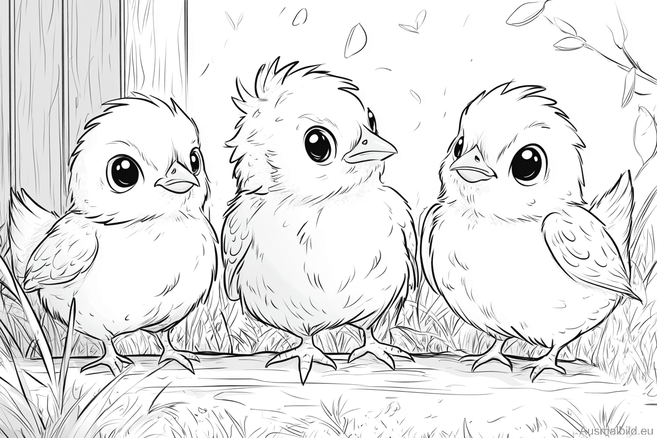 Have fun with our free coloring page featuring an adorable coloring page of three little chicks in a henhouse. These cute chicks are waiting for you to bring them to life in bright colors. Whether it’s bright yellow, soft blue or vibrant red, there are no limits to your creativity. This coloring picture will delight both children and adults and is a wonderful way to spend time together. Download the PDF, print it out and start your creative adventure in the henhouse! Coloring with our little chicks will be an unforgettable experience. Grab your pencils and let the colors flow as you discover the joy of art while stimulating your imagination. Get ready to make these three little chicks a real eye-catcher and playfully learn more about life on the farm as you let off steam in the colorful world of hens and chicks. Simply click on the button to download your free coloring page and get started!