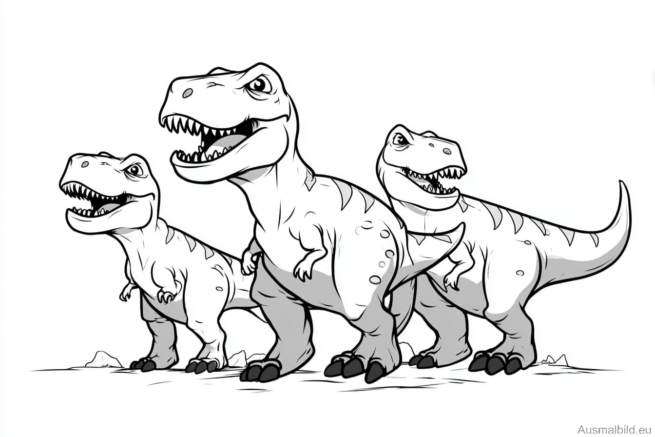 Bist du bereit, deine kreativen Saurierkräfte zu entfalten? Unser fantastisches Ausmalbild einer Gruppe von drei kleinen, jung gebliebenen T-Rex, auch bekannt als Tyrannosaurus Rex, wartet nur auf dich! Diese Malvorlage ist nicht nur kostenlos, sondern auch der perfekte Weg, um deine Vorstellungskraft zum Leben zu erwecken. Stell dir vor, wie diese drei kleinen Riesen in bunten Farben erstrahlen, während sie sich fröhlich in ihrer prähistorischen Welt herumtummeln. Egal, ob du ein kleiner Dino-Fan oder ein großer Jurassic Park Enthusiast bist, dieses Ausmalbild wird dir garantiert ein Lächeln ins Gesicht zaubern. Klick einfach auf den Button, um das PDF herunterzuladen, und lass deiner Kreativität freien Lauf! Es ist Zeit, die dich umgebende Farbwelt zu erobern und den T-Rex in dir zu wecken!