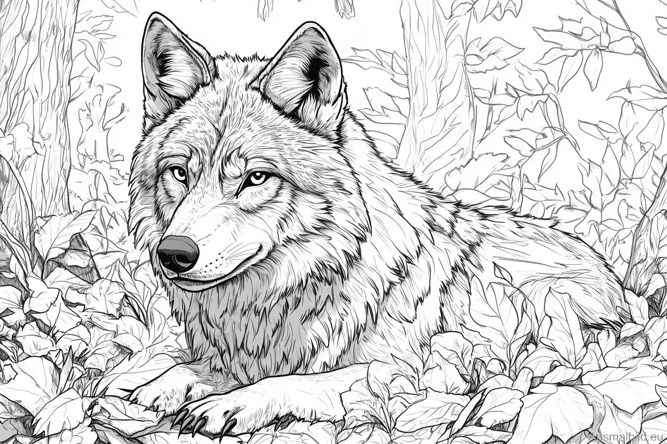 Viel Spaß mit unserem kostenlosen Ausmalbild eines majestätischen Wolfs, der entspannt im Wald liegt, umgeben von hohen Bäumen und dem sanften Laub, das im Wind raschelt. Diese Malvorlage bietet eine wunderbare Möglichkeit, in die faszinierende Welt der Wildnis einzutauchen und deiner Kreativität freien Lauf zu lassen. Der Wolf, ein Symbol für Stärke und Freiheit, wartet darauf, in deinen liebsten Farben zum Leben erweckt zu werden. Lass deine Fantasie spielen, während du die unterschiedlichen Schattierungen für das dichte Grün der Blätter oder die warmen Erdtöne für den Boden wählst. Das Ausmalen ist nicht nur eine tolle Beschäftigung für Kinder, sondern auch für Erwachsene, die einen Moment der Ruhe und Entspannung suchen. Klicke einfach auf den Button, um unser wunderschönes Ausmalbild herunterzuladen, auszudrucken und mit dem Ausmalen zu beginnen. Erlebe die Freude, deinen ganz eigenen Wald mit diesem Wolf und seiner traumhaften Umgebung zu gestalten, und genieße die kreative Auszeit, die dir dieses Projekt bietet. Hol dir jetzt deine kostenfreie Malvorlage und starte dein künstlerisches Abenteuer im Herzen der Natur.